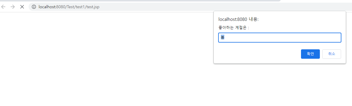 var test1 = prompt("좋아하는 계절은 :","봄");