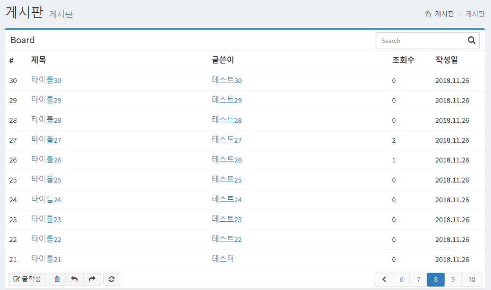 | 2 | 타이틀2 | 0 | 2018.11.26 | 테스트2 |