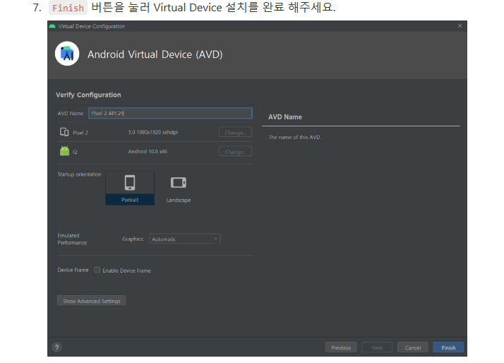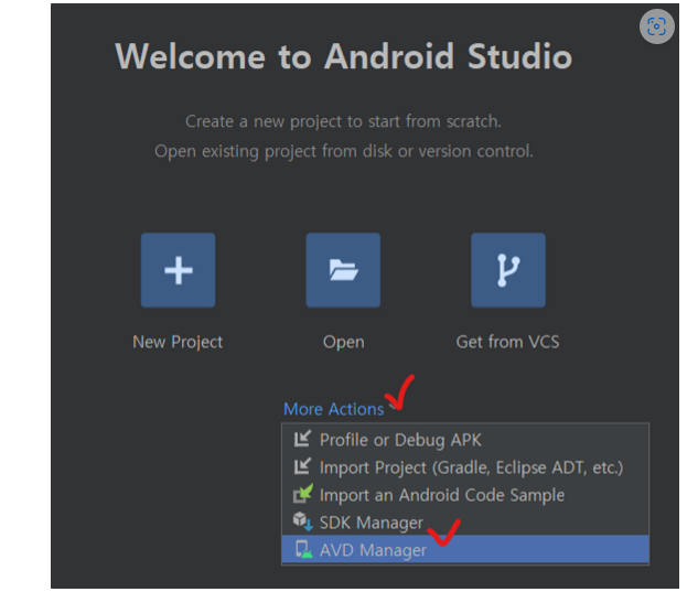 💡 앱을 개발시 실제 휴대폰을 연결하여 개발을 진행할 때도 있지만, 대부분의 경우 AVD(Android Virtual Device, 컴퓨터에 가상의 휴대폰을 띄우는 소프트웨어)를 이용하여 개발합니다.