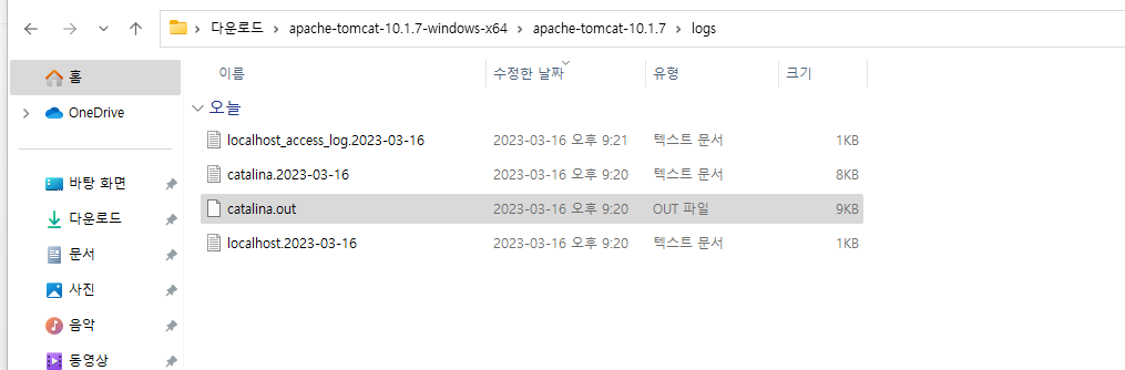 톰캣의 실행 로그는 톰캣폴더