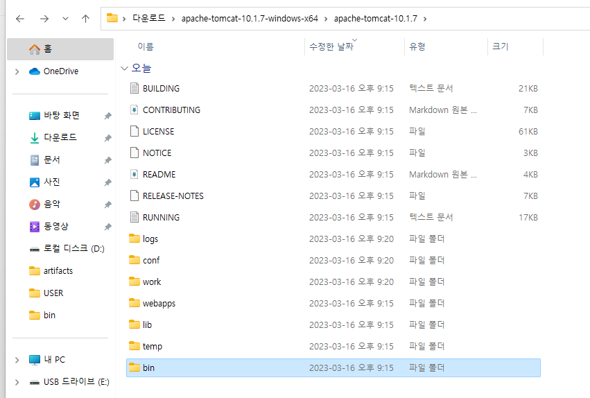 3. 톰캣 압출 해제후 bin 으로 들어가기