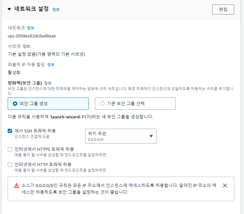 6. 키는 인스턴스 접속하기전에 확인하는 키로 잊어버리지 마시길 바랍니당.