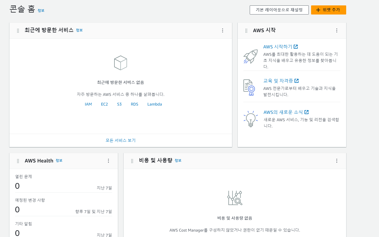 1. 앞 페이지에서 회원가입후 콘솔창 홈으로 들어온다.