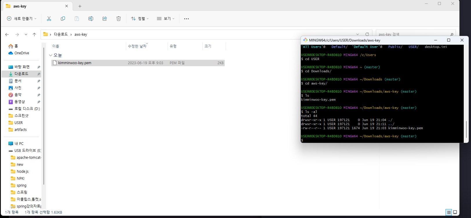 -rw-r--r-- 1 USER 197121 1674 Jun 19 21:03 kimminwoo-key.pem