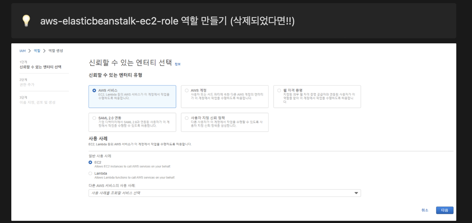 aws-elasticbeanstalk-ec2-role 선택하기