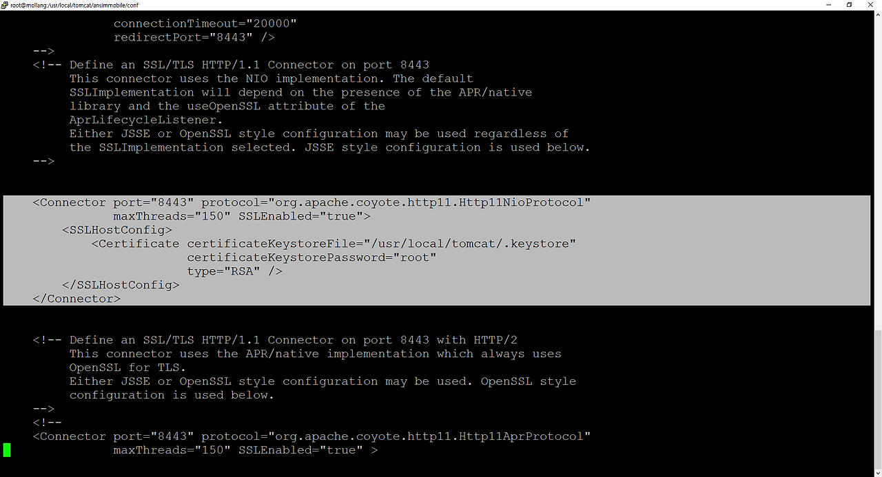 tomcat의 server.xml에 주석처리된 Connector을 풀거나 만든다.