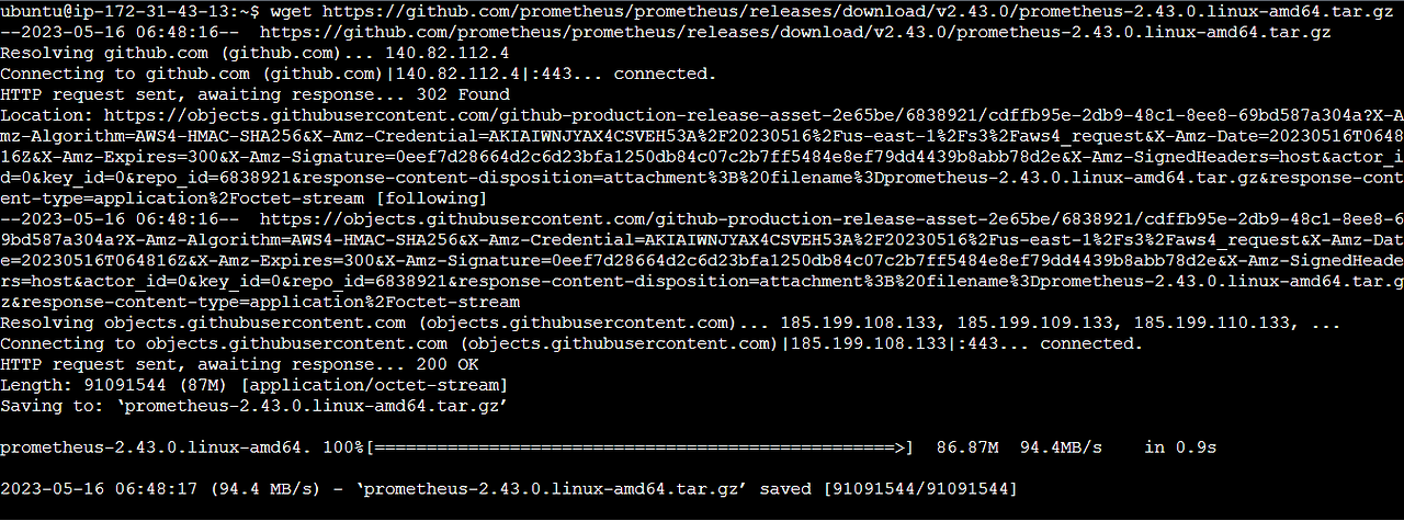 wget https://github.com/prometheus/prometheus/releases/download/v2.43.0/prometheus-2.43.0.linux-amd64.tar.gz