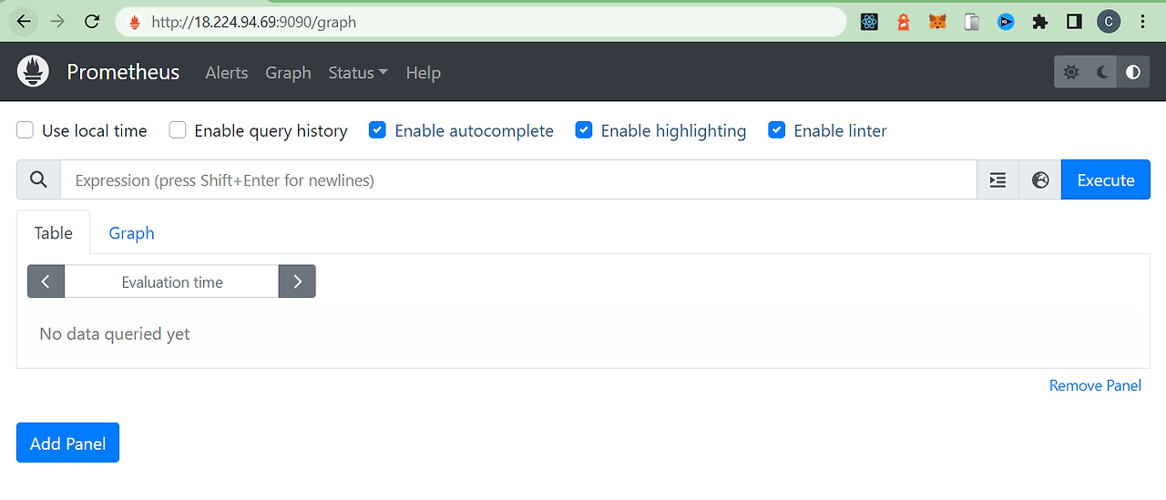 Prometheus가 성공적으로 실행되면 localhost:9090 또는 <ip_address>:9090을 사용하여 웹 브라우저를 통해 액세스할 수 있습니다.