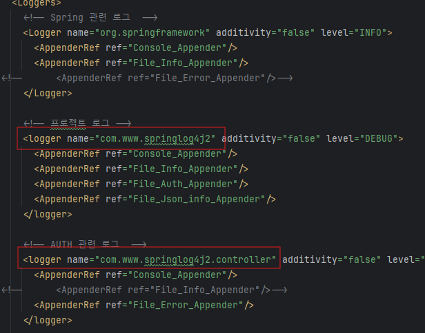 # [Loggers] 로그 출력 범위를 정의