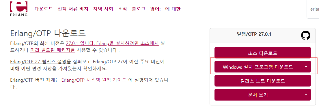 2 ) Erlang/OTP 다운로드