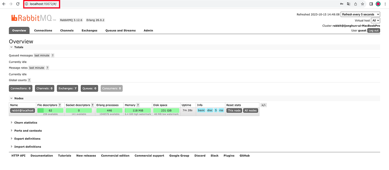 💡 로컬 RabbitMQ 경로는 http://localhost:15672/ 입니다.