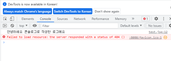 F-12 개발자 도구에 들어가서 CONSOLE 창을 확인해보면 작성이 된것을 확인할수 있습니다.