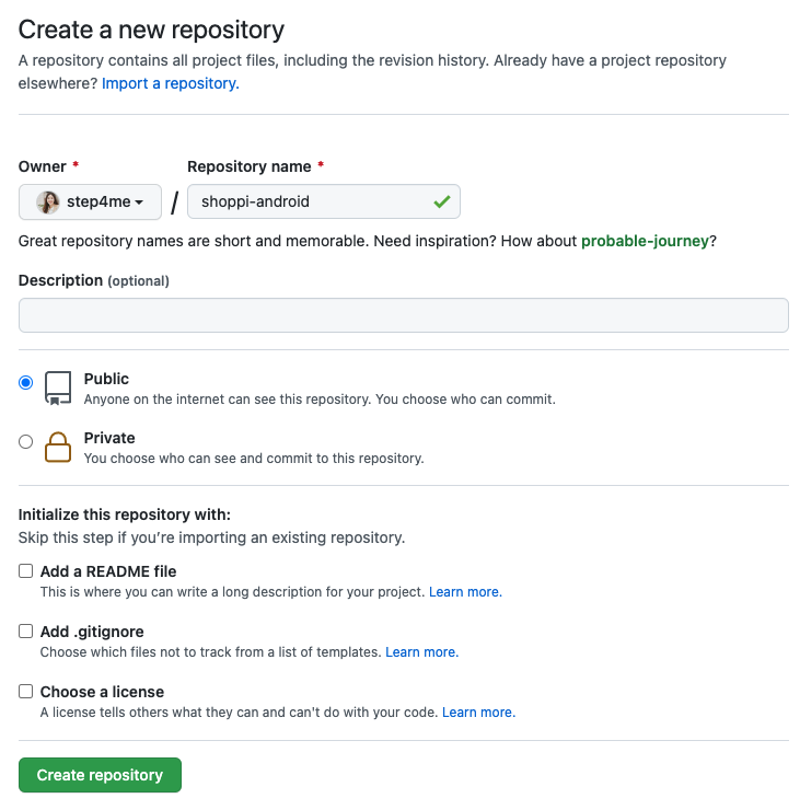 - 하단의 'Create repository' 버튼을 클릭해주세요.