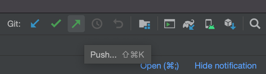- 상단 Git 메뉴 : Push 버튼 클릭