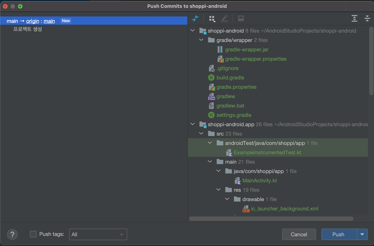 - 프로젝트 생성 단계의 작업 이력을 첫 번째 Commit으로 추가하는 단계입니다.