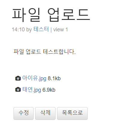 파일을 등록한 게시글의 상세페이지에 들어가서 등록한 파일들이 보이면 파일 업로드가 완성되었다. 이미지외에도 다른 확장자의 파일들도 저장할 수 있다. 이제 등록된 첨부파일들을 다운로드할 수 있어야 한다. 첨부파일 다운로드는 다음 포스팅에 작성하려고 한다. 얼른 올려야겠당..
