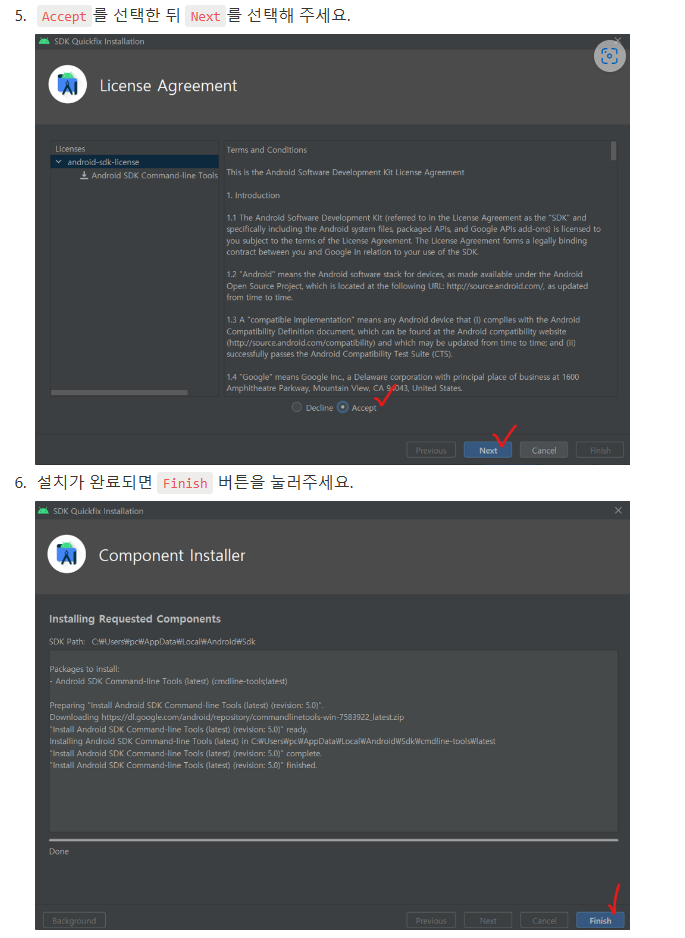 Android Command-line Tools는 Flutter에서 Android에 명령을 내리기 위해 필요합니다.