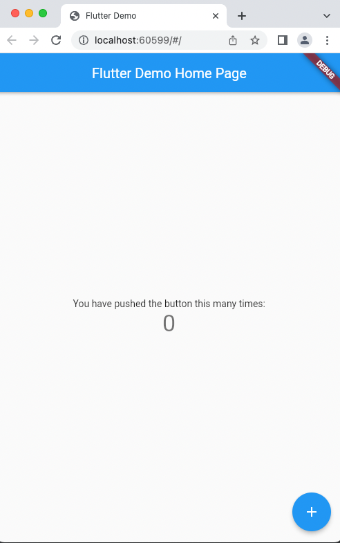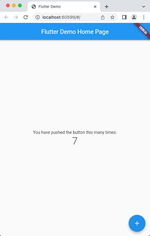 오른쪽 하단의 + 버튼을 누르면 누른만큼 숫자가 카운팅되서 증가하는 예제이다.