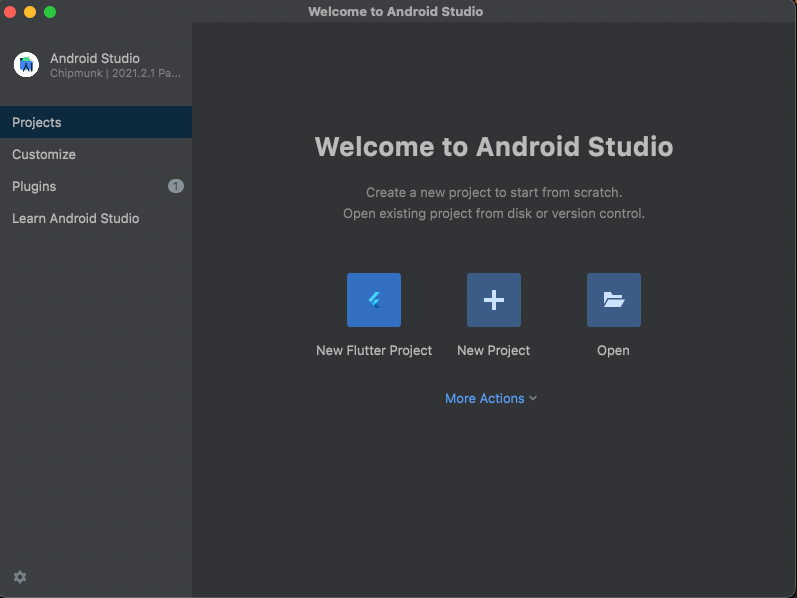 설치 후 재시작을 해주면 Projects > New Flutter Project 가 생겼다.