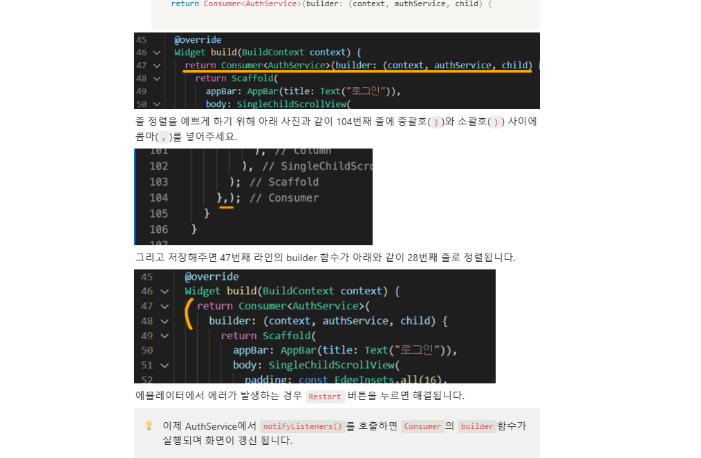 return Consumer<AuthService>(builder: (context, authService, child) {