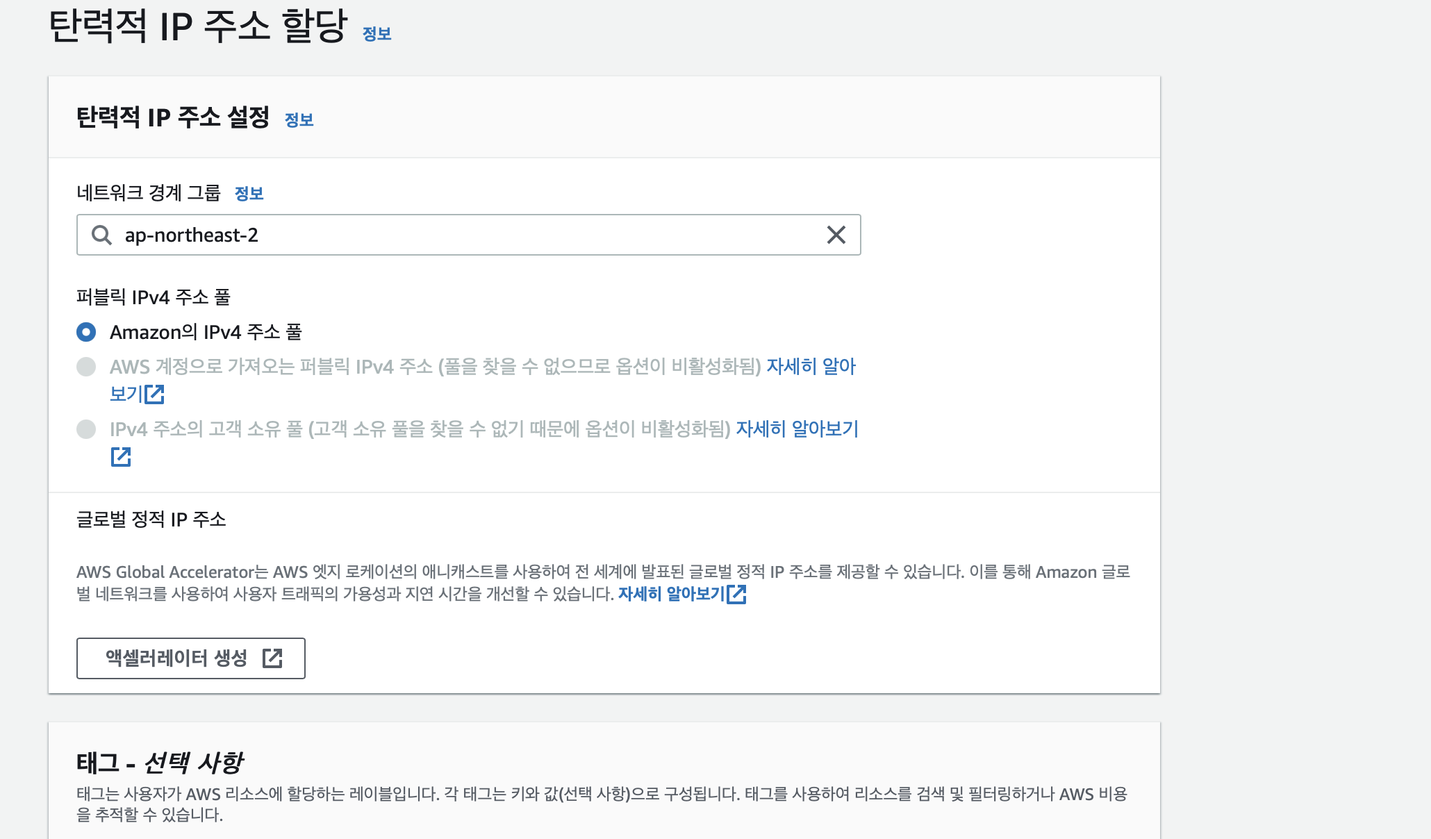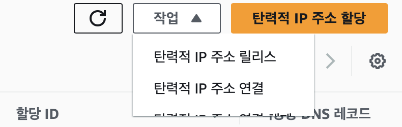 1, 탄력적 ip 주소 릴리스 = > ec2 종료할때 같이 종료 해줘야함 안그러면 비용발생.2. 탄력적 ip 주소 연결 =.> ec2 연결할때 눌러줘서 연결 시켜줘야함. 안그러면 비용 발생.
