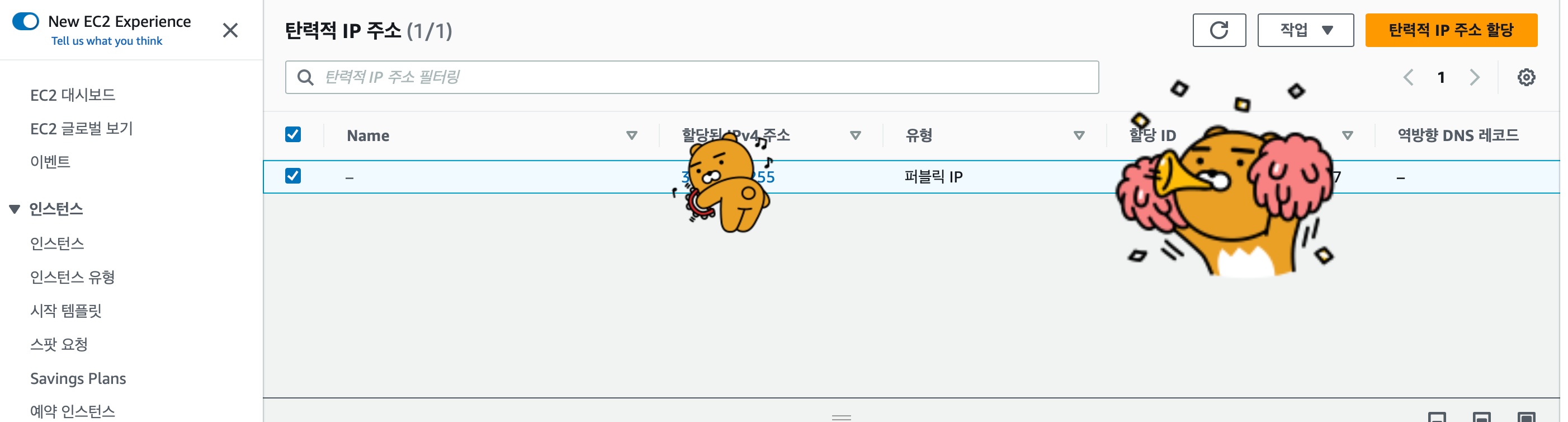 이조건을 유지하지 못하면 비용이 청구 되기때문에 EC2 에 탄력적 IP 를 연결 해 준다.