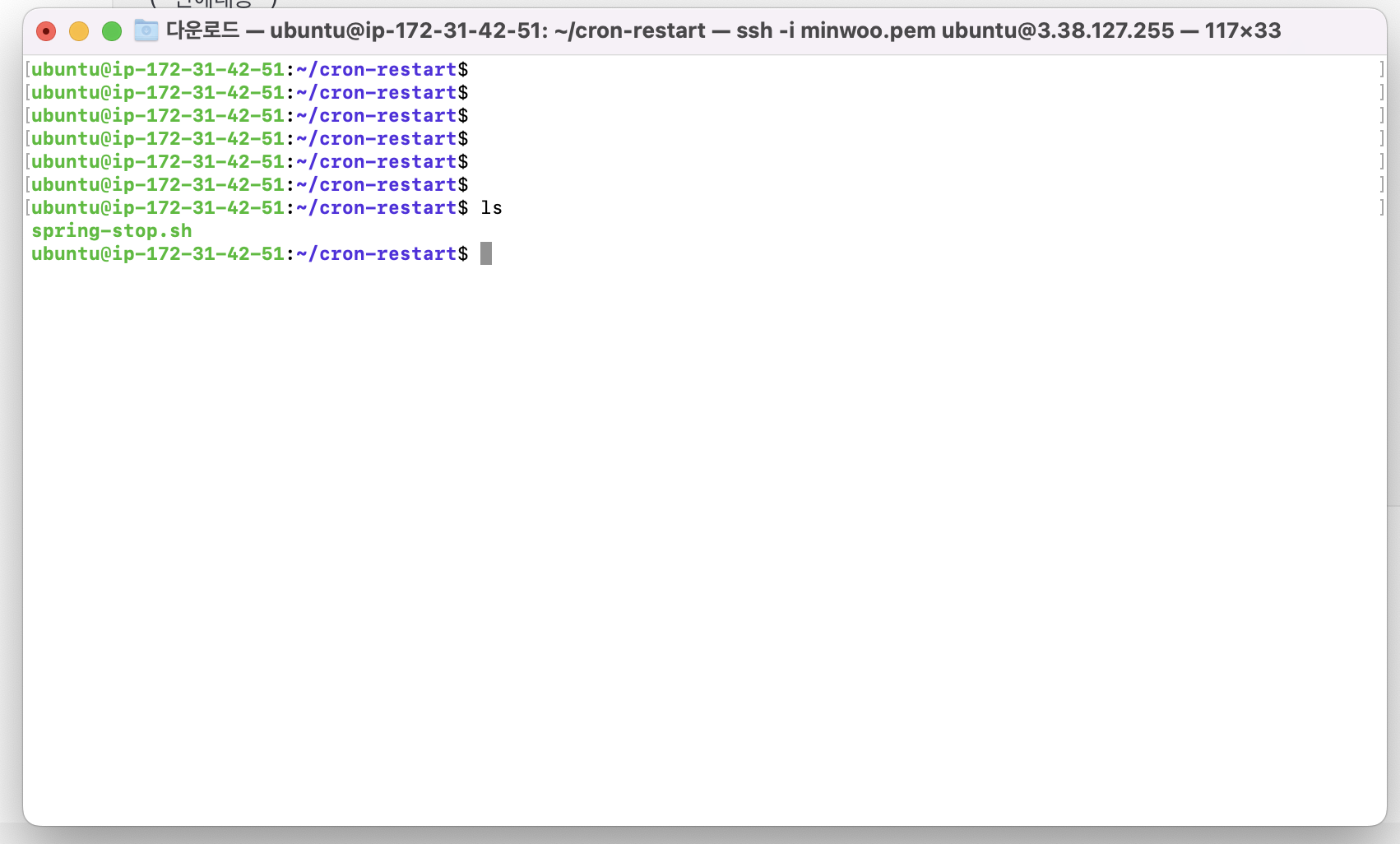 1 . 우선 /home/ubuntu/cron-restat.sh 파일 생성