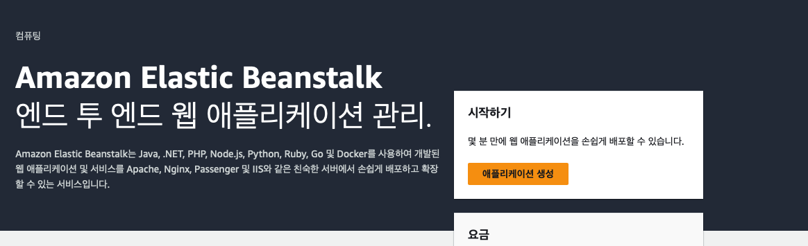 2. 일단 EC2 대쉬 보드에서 엘라스틱 빈스톡으로 클릭해준다.
