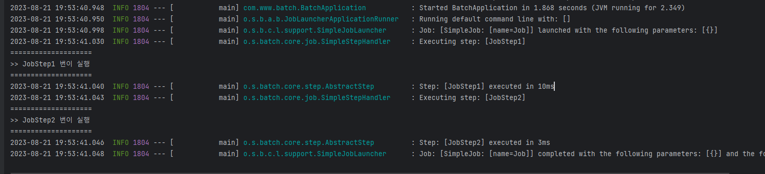 3. 일단 시작하는 로직은 Job 실행하게 되면 Job 이 포함하고 있는 Step 들을 1개이면 1개